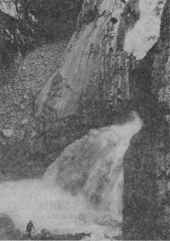 Место здесь живописное, но отчасти суровое. С ледников Богоса сбегают сюда холодные потоки Тунсадаора и Семилдаора, образующих при слиянии реку Черах. Ущелье Чераха глубоко врезано в окрестные горы, отчего все пути сообщения проложены высоко над рекой. На этих высотах, на крутых склонах живут в редких аулах горцы. От МТФ одна тропа уходит вниз по ущелью, а другая, более крутая,— наискосок вверх. После большого набора высоты по травянистым склонам тропа достигает временной летовки, расположенной на пологой части отрога хребта Росода. Отсюда, с высоты около 2550 м, видны будто вертикально падающие в Черах северные отроги Тлим-Капусли и Джарачана, ледник Тлим, зажатый этими отрогами, и белая нитка реки, низвергающейся на дно ущелья. Вниз по Чераху весело смотрятся склоны хребтов Росода и Гарта.