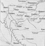 Через 1 км подъема по ущелью Шаитли переход па правый берег. Ущелье постепенно расширяется, тропа проходит через несколько поселений (Инух, Хотох, Хветль, Кетури). Склоны безлесные, однако за рекой, на северных склонах горы Вето, темнохвойные высокоствольные леса. Долина Шаитли не похожа на Митлудинское ущелье, но по-своему привлекательна; здесь большие просторы, открываются дальние планы, видны вершины хребтов Кириоти, Богосского, Хема. Жить горцам тут нелегко: они оторваны от “большой земли”. В ауле Геннятль, через который проходит тропа, развалины древней крепости. Еще 1,5—2 км, и тропа приводит в аул Шаитль — последнее селение долины.